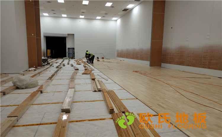 北京環(huán)球影城籃球館運動木地板案例,項目案例使用歐氏地板籃球館專用單層龍骨結(jié)構(gòu)運動地板,施工面積344平米。